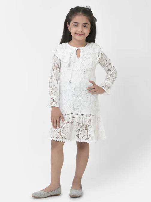 Eavan Girls White Embroidered Dress made from net fabric, Full sleeves having round neck, 2023 Summer Collection. Material care-Hand wash only