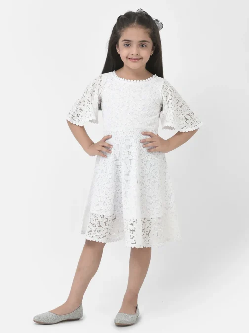 Eavan Girls White Embroidered Dress made from net fabric, short sleeves having round neck, 2023 Summer Collection. Material care-Hand wash only