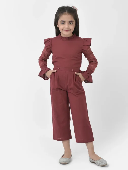 Eavan Girls Rust Solid Jumpsuit