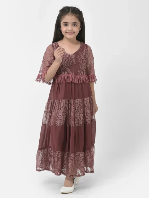 Eavan Girls Choclate Brown Embroidered Maxi Dress