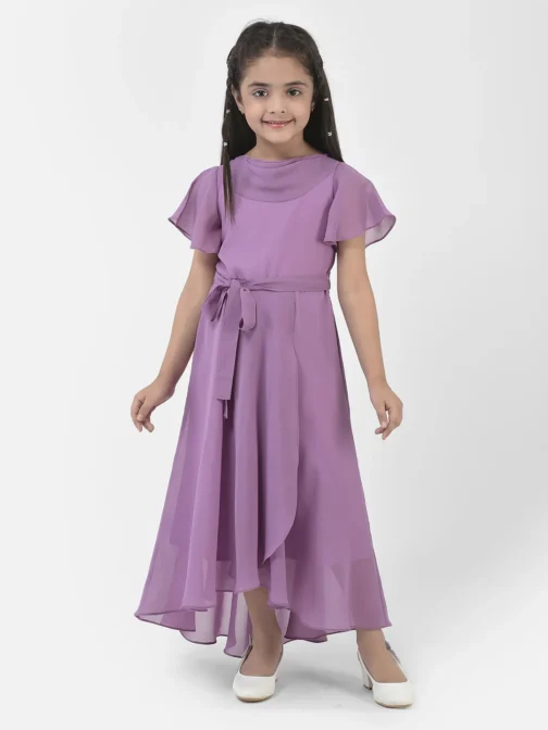Eavan Girls Lavender solid Maxi Dress made from Georgette fabric, short sleeves having Neck round neck, 2023 Summer Collection. Material care-Hand wash only