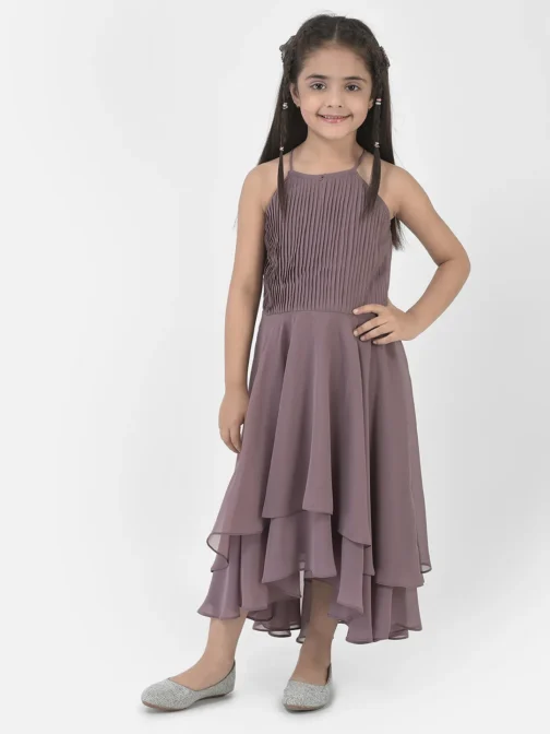 Eavan Girls Light Brown Solid Maxi Dress made from Georgette fabric, sleeveless having Boat neck, 2023 Summer Collection. Material care-Hand wash only