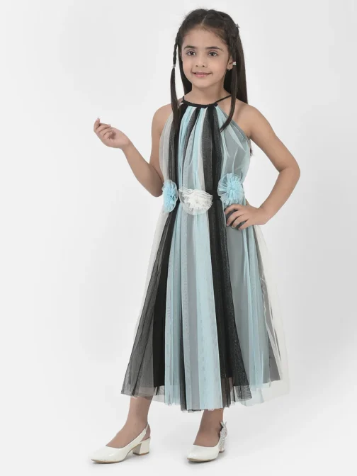 Eavan Girls Multi Colour Solid Maxi Dress made from net fabric, sleevless having round neck, 2023 Summer Collection. Material care-Hand wash only