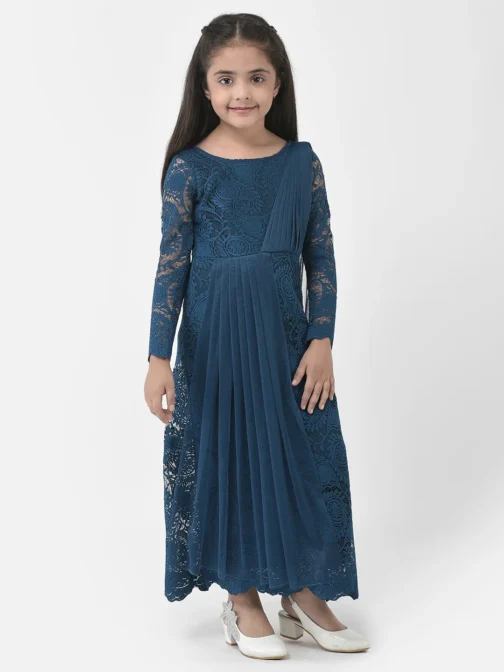 Eavan Girls Teal Blue Embroidered Maxi Dress