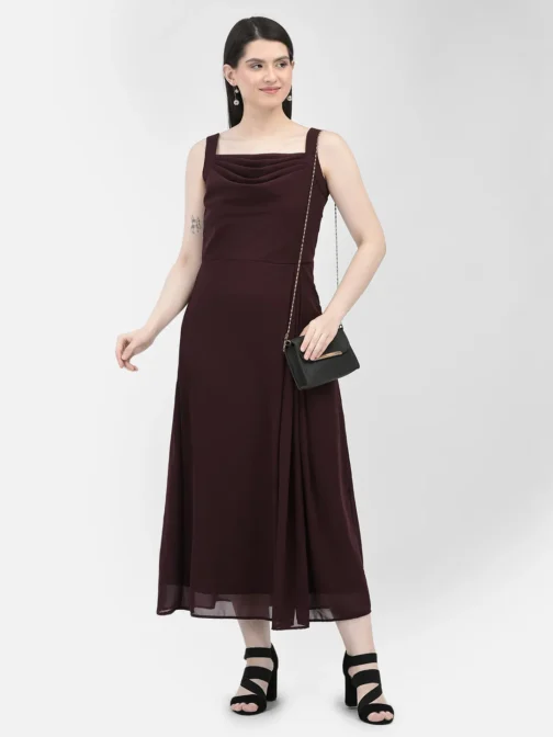 Eavan Women Burgundy Solid Dress made from Georgette Fabric having Maxi Square Neck and Sleeveless