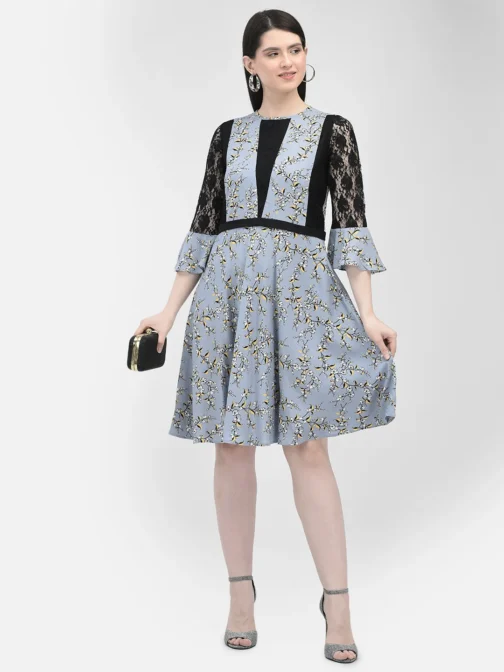 Eavan Women Grey Embellished Dress made from Cotton Fabric having Knee Length Round Neck and Three-fourth quarter sleeves