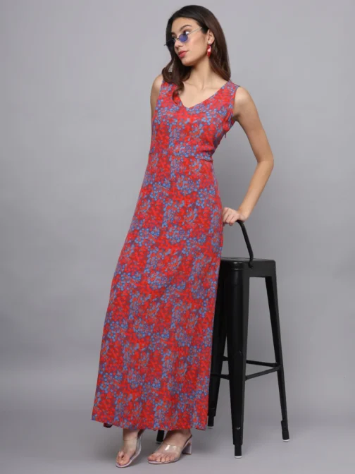 Eavan Women Multi Color Printed Maxi Dress made from Moss Crepe Fabric sleeveless having V Neck 2024 Summer Collection Eavan material care – hand wash only