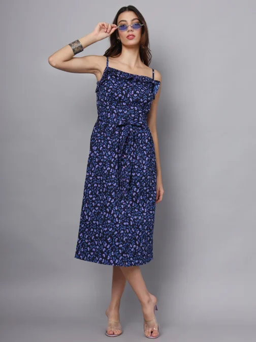 Eavan Women Multi Color Printed Midi Dress made from Poplin Lycra Fabric sleeveless having Shoulder Strips 2024 Summer Collection Eavan material care – hand wash only