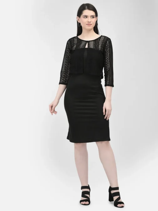 Eavan Women Black Net Top made from Cotton Fabric having Crop Boat Neck and Three-fourth quarter sleeves