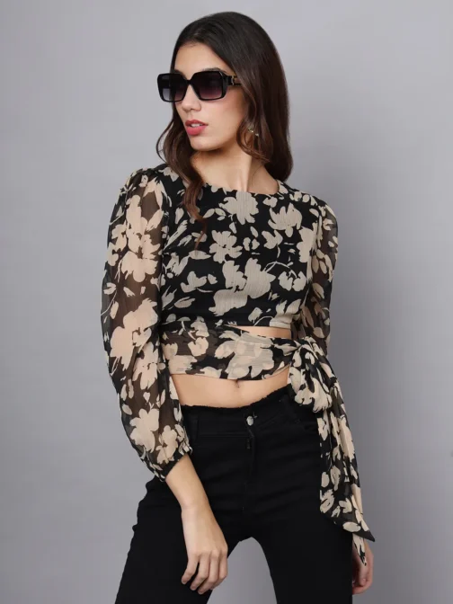 Eavan Women Multi Color Printed Crop Top made from Chiffon Fabric Full Sleeves having Boat Neck 2024 Summer Collection Eavan material care – hand wash only