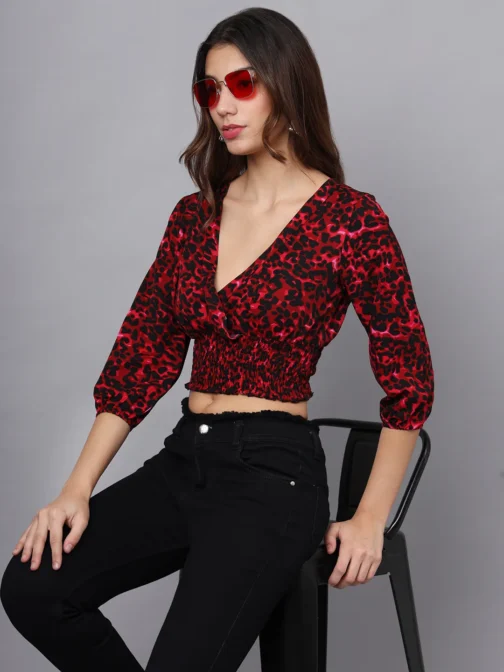 Eavan Women Multi Color Printed Crop Top made from Crepe Fabric Quarter Sleeve having V Neck 2024 Summer Collection Eavan material care – hand wash only