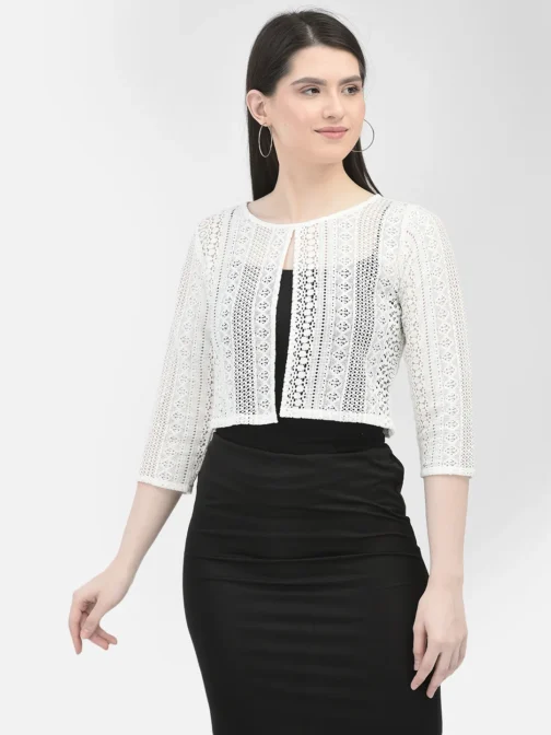 Eavan Women White Net Top made from Cotton Fabric having Crop Boat Neck and Three-fourth quarter sleeves